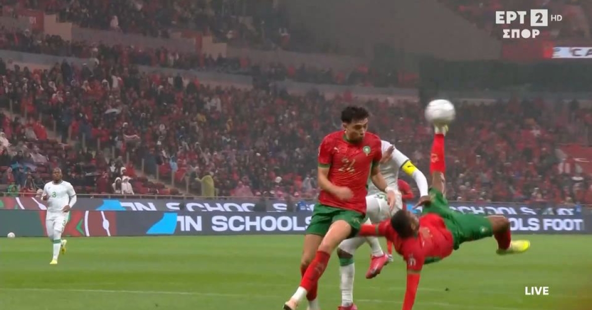 Ayoub El Kaabi scores a spectacular bicycle kick goal!✂️🤯#DimaMaghrib 🇲🇦 pic.twitter.com/KAGlpWvRXY