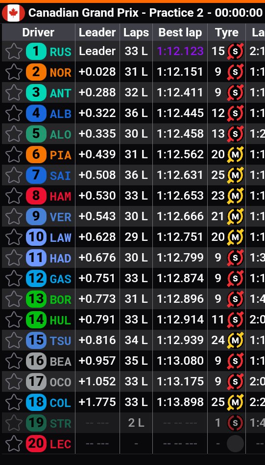 Στο Grand Prix Καναδά, το δέκατο τριήμερο της Formula 1 για το 2025, οι οδηγοί και οι ομάδες είχαν 60 λεπτά στη διάθεσή τους για να βελτιώσουν τις επιδόσεις των μονοθεσίων τους και να δοκιμάσουν στρατηγικές για τη συνέχεια.