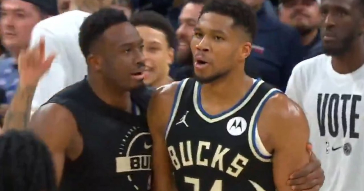 Ο Θανάσης Αντετοκούνμπο, παρακολουθώντας την έκρηξη του μικρότερου αδερφού του, έσπευσε να τον ηρεμήσει, του λέγοντας «ήρεμα, ήρεμα» και έπειτα τον συνεχάρη για το κρίσιμο σουτ που όπως αποδείχθηκε, χάρισε τη νίκη στους Μπακς.