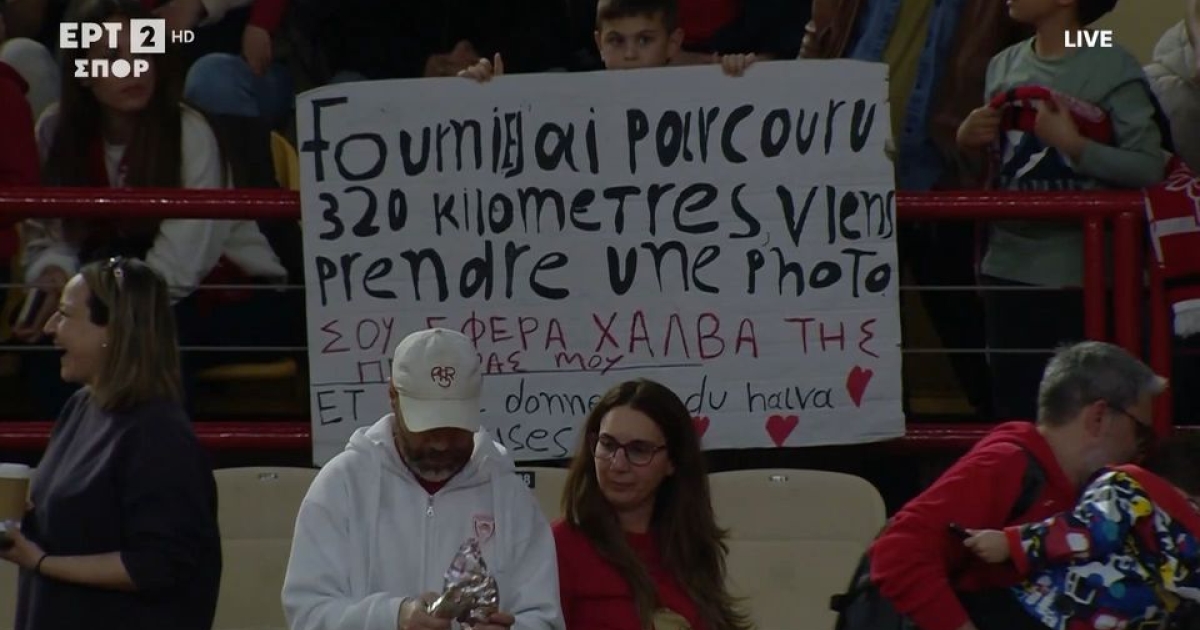 Ο ενθουσιώδης φίλαθλος παρουσίασε μια πρωτότυπη πινακίδα, στην οποία αποκάλυψε την περιπέτειά του: «έκανα 320 χιλιόμετρα για μια φωτογραφία και να σε κεράσω χαλβά της πεθεράς μου». Με φόρμα του Φουρνιέ στο σώμα του, περίμενε ανυπόμονα να δει αν ο Γάλλος αστέρας θα τον παρατηρήσει στην κερκίδα.