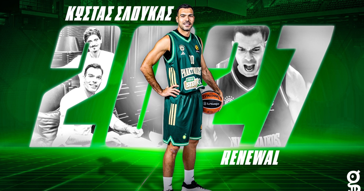 Με επίσημη ανακοίνωση, οι Πράσινοι επιβεβαίωσαν τη διατήρηση του Κώστα Σλούκα στην ομάδα, ο οποίος θα υπερασπιστεί τα χρώματα του Παναθηναϊκού μέχρι το 2027.